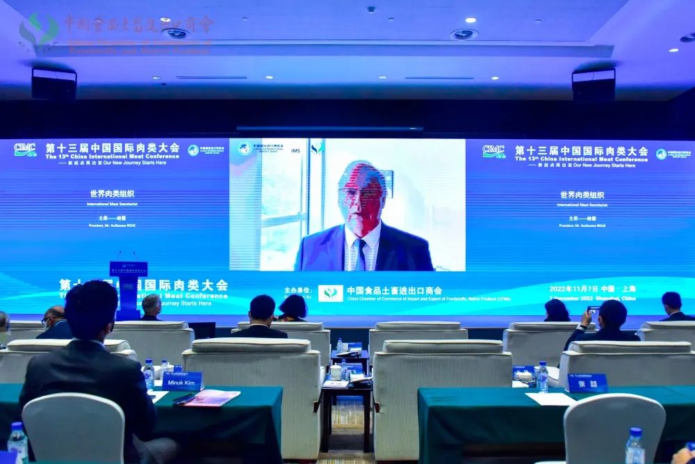 作为第五届中国国际进口博览会配套活动,第十三届中国国际肉类大会于11月7日在国家会展中心(上海)成功举办。此次大会由中国食品土畜进出口商会主办,世界肉类组织、天津市商务局、泰森食品、丹麦农业和食品委员会、荷兰范德利集团、新西兰银蕨、USAPEEC、西班牙猪业联盟、乌拉圭国家肉类协会、央联万贸、加拿大猪肉协会、巴西动物蛋白协会、云食界网络科技有限公司协办并全程直播。大会主题为“新起点,再出发”。