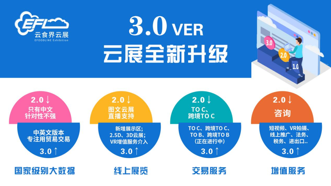 云食界3.0版面世标志着云食界实现了1.0到3.0的跨跃,其国际食品大数据更完善,展览展示更多维,交易服务更全面,增值服务更务实的全面升级,更好服务全球食品农产品企业开发中国巨大消费市场,解决全球食品农产品进出口行业痛点和难点。