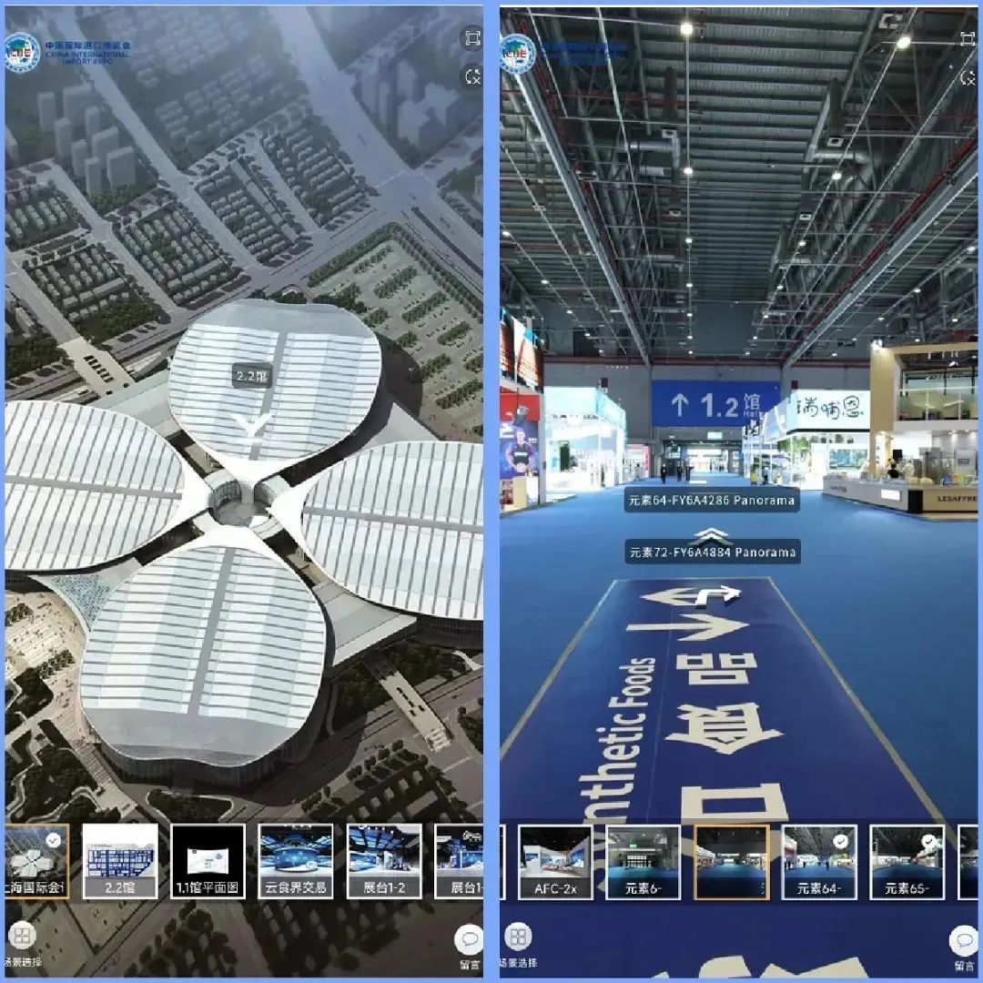 在展览展示环节,3.0版云食界增加了VR云展功能,实现了云上2.5D和3D展厅的立体展示。为第五届进博会食品农产品展馆进行VR全景拍摄、上线,通过720°全景、数字化制作,综合运用5G、VR等新形式、新技术形成线上数字展馆,通过丰富多样的数字展示形式,首次为进博会留下了数字化“永不落幕”的线上食品农产品VR展馆(2.1/2.2/1.2)。