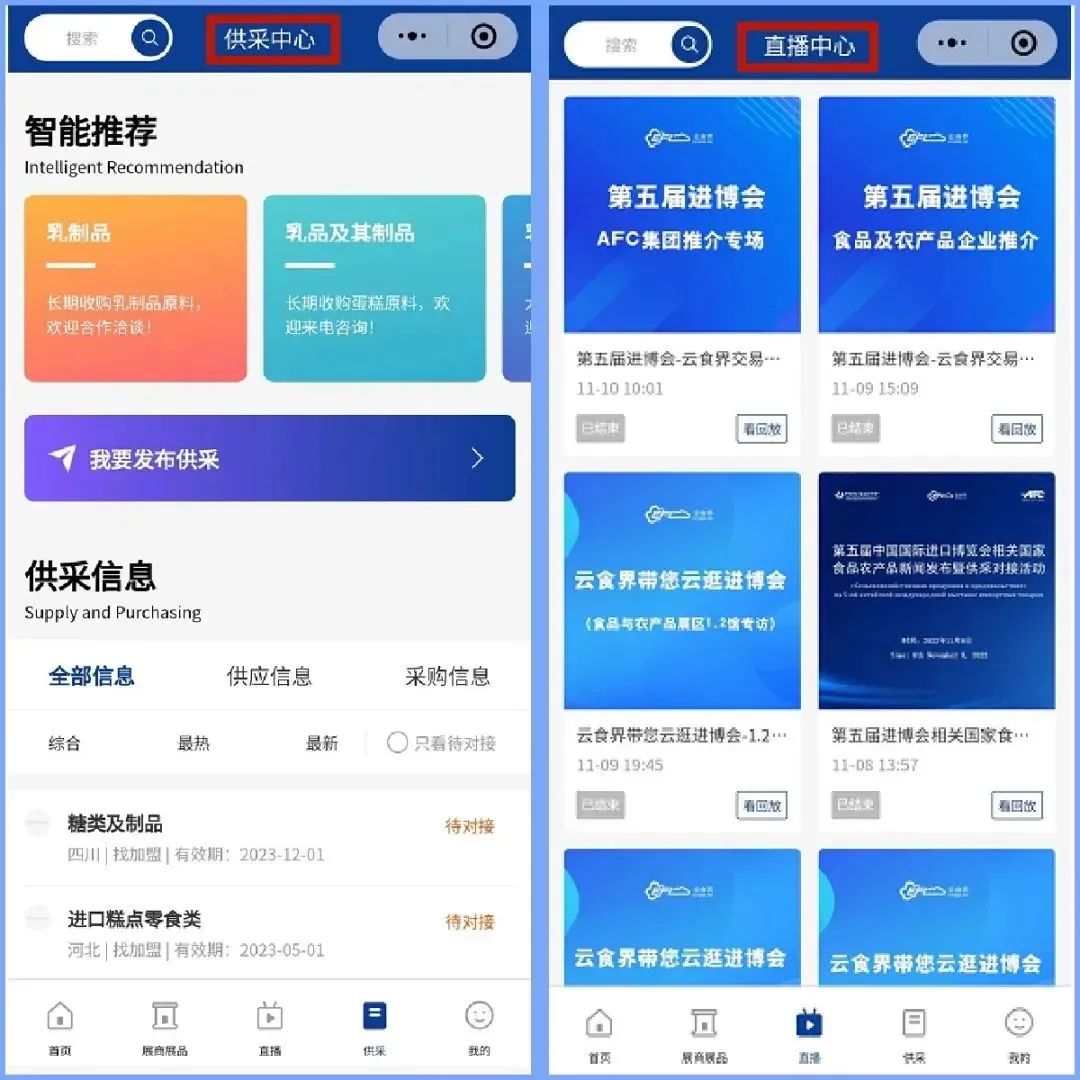 2.微信小程序搜索“云食界”,进入小程序首页,点击“直播中心”即可观看回放;