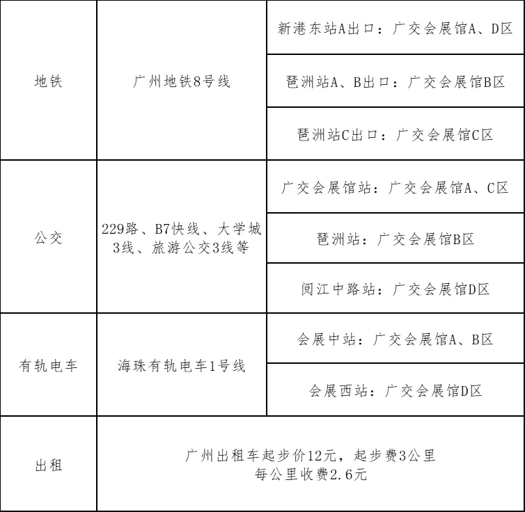 (2)自驾展会期间展馆停车场只对有广交会内停车证的开放,不对无停车证的开放。 请前往展馆附近停车场停车,部分停车场地址如下: