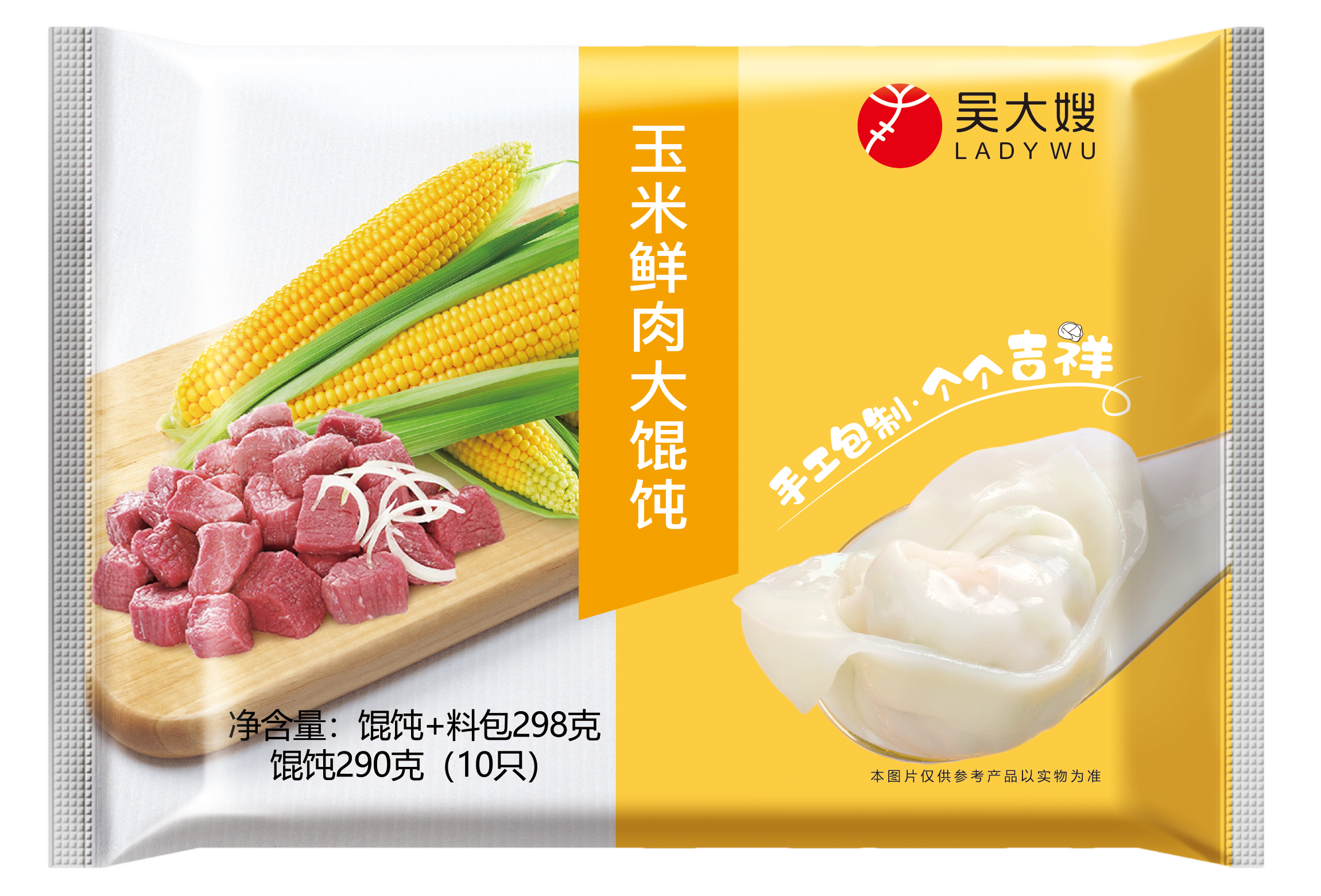 公司主营“吴大嫂”牌速冻食品,包含风系列、海鳌至鲜系列、原汁系列、经典牧歌450g、经典牧歌800g、750g水饺系列、600g馄鲜生系列小云吞、400g馄鲜生系列小云吞、盛唐风韵系列、个个吉祥系列