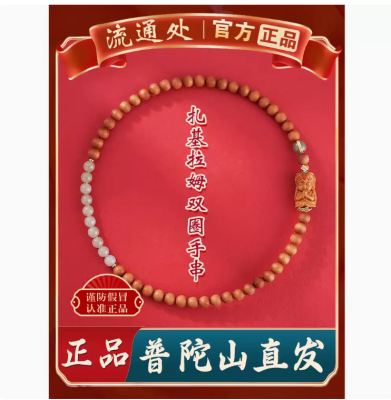 普陀山扎基拉姆双圈手串天然香檀木藏式和田玉唐卡女财神手链女款