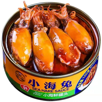 麻辣海兔小海鲜熟食即食罐装罐头海兔子满籽墨鱼仔鱿鱼乌贼八爪鱼