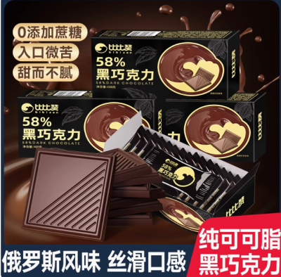 比比赞100%纯黑巧克力纯可可脂俄罗斯风味巧克力低0无蔗糖零食批