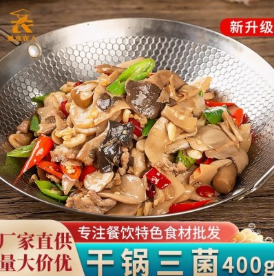 干锅三菌400g酒店饭店餐饮商用小炒杂菌菇什锦菇湘菜半成品预制菜