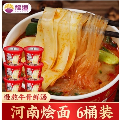 豫道特色河南烩面160g*6桶装牛肉味非油炸刀削面免煮冲泡方便速食