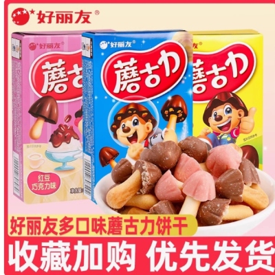 好丽友蘑古力巧克力饼干48g*6盒牛奶巧克力红豆味儿童零食小吃