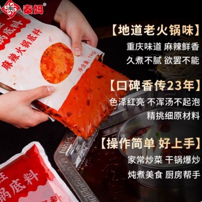 重庆火锅底料餐饮批发秦妈火锅店商用麻辣牛油老火锅调料1000g