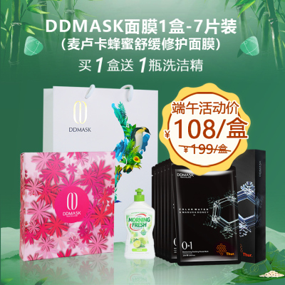 【粽情端午】DDMASK新西兰进口每日鲜颜麦卢卡蜂蜜舒缓修复面膜补水修护清洁毛孔袪黑头粉刺修护敏感25ml*7片