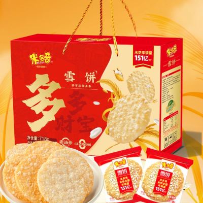 米多奇雪饼礼盒粗粮米饼年货过年送人膨化零食大礼包整箱福利团购
