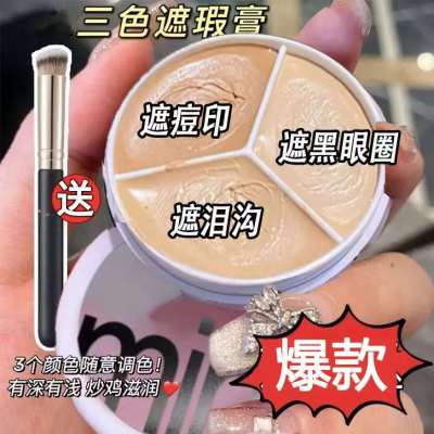 Sweet mint三色遮瑕膏遮斑防水不脱妆遮暇遮盖黑眼圈眼袋痘坑痘印男士小样 三色遮瑕膏