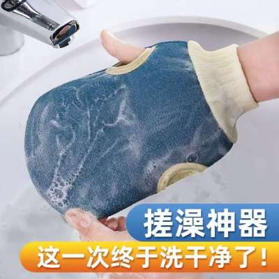 SAFEBET加厚粗磨砂搓澡巾双面强力搓泥带指沐浴手套洗澡巾搓澡神器去角质 1个装-随机颜色