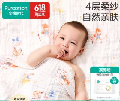全棉时代婴儿纱布浴巾纯棉宝宝新生儿童浴巾超软吸水包巾洗澡用品
