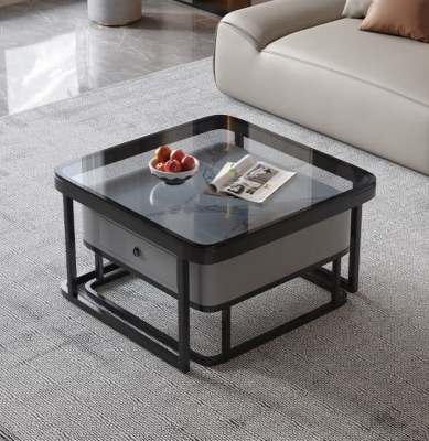 丰舍 加厚岩板茶几现代简约家用储物可伸缩方茶几小户型家用客厅家具