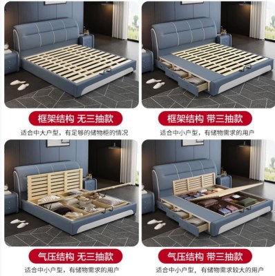 芝木轩床 双人床真皮床主卧 现代简约实木皮艺卧室家具