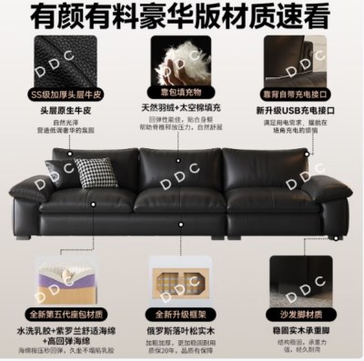 ddc意式极简真皮沙发现代简约客厅家具大小户型直排头层牛皮艺沙发