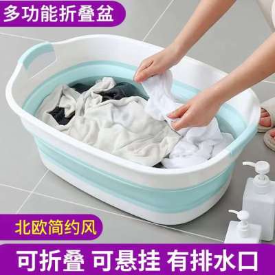可折叠洗衣盆特大号儿童洗澡盆 家用洗脚盆长方形塑料盆子 蓝色