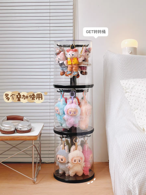 旋转盲盒收纳展示架透明摆件手办展示柜适用泡泡玛特labubu展示盒