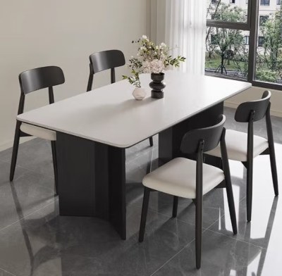 春花秋月意式岩板餐桌椅组合小户型餐桌家用现代简约饭桌长方形实木饭桌子