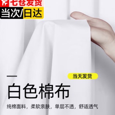 皓梵洁白布纯棉布料白棉布扎染布白色软胚布横幅纯棉布纯白布头处理全棉