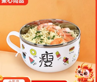 聚心尚品 不锈钢泡面碗带盖宿舍学生饭盒上班族便携便当盒饭碗