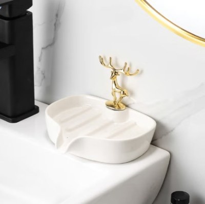 圣铜一师一傅北欧轻奢陶瓷肥皂盒沥水香皂置物架不积水家用卫生间皂碟托免打孔