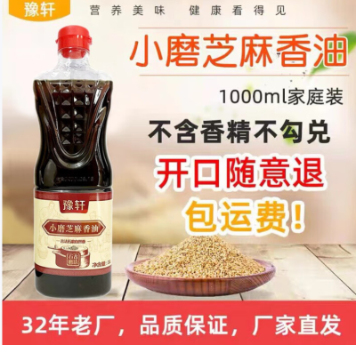 豫轩(YUXUAN)纯芝麻小磨香油芝麻油农家自榨石磨芝麻香油火锅蘸料家用1L瓶装 小磨芝麻香油【1L】