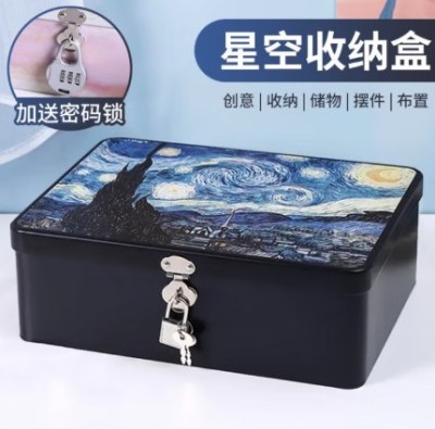 带锁收纳盒桌面同学礼物收纳箱带锁铁盒子桌面收纳钥匙化妆品珠宝