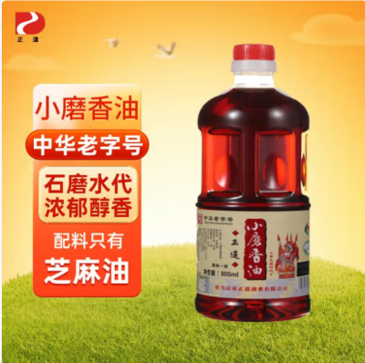 正道小磨香油 传统石磨水代法 纯正白芝麻香油 中华老字号800ml/瓶