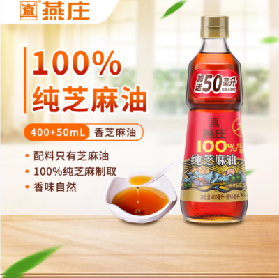 燕庄香芝麻油400mL加赠50mL 一级0添加香油凉拌调味家用餐饮火锅