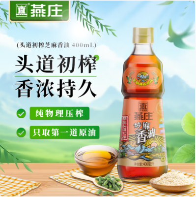 燕庄头道初榨芝麻油400ml 家用厨房调味油纯正香油火锅油碟麻辣拌