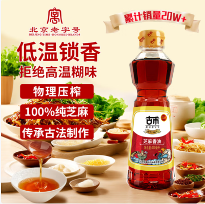 古币 芝麻香油 纯芝麻香油450ml 凉拌调味火锅油碟京粮出品北京老字号