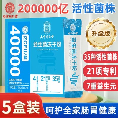 南京同仁堂40000亿益生菌成人肠道便调秘脾胃虚弱理速溶型高活性菌十大排名冻干粉 98%人选)5盒【3盒价]每盒40000亿活菌