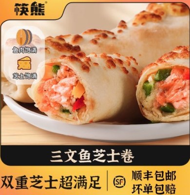 筷熊三文鱼芝士卷早餐儿童空气炸锅烤箱加热即食材拉丝披萨半成品