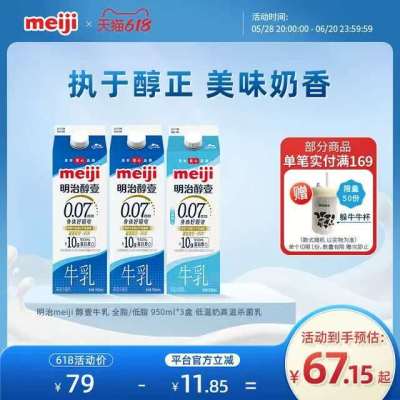meiji 明治醇壹牛乳 全脂/低脂 950ml*3盒 低温奶高温杀菌乳