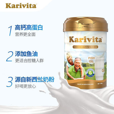 【添加鱼油 高钙脱脂】Karivita佳乳达新西兰进口高钙中老年奶粉成人无添加糖脱脂成年高蛋白老人牛奶粉罐装