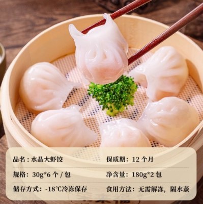 荣来福水晶虾饺皇广式早茶点心速冻虾仁半成品广东早餐饺180g/袋