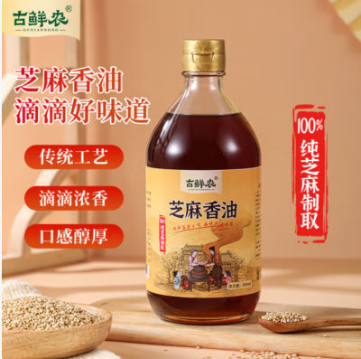 古鲜农正宗芝麻香油100%纯正无添加月子油火锅蘸料拌面煲汤家用调味香油 古鲜农芝麻香油500ml*1玻璃瓶