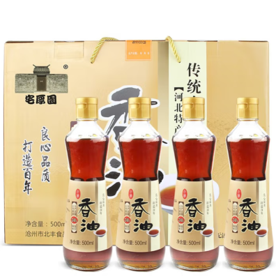 宅厚园香油礼盒装500mlX4瓶 纯芝麻油天然石磨工艺 凉拌调味烹饪火锅