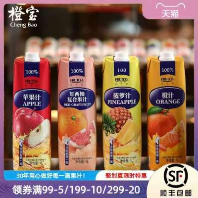 橙宝Frutco橙汁同款100%纯果汁饮料苹果汁菠萝汁家庭装1L*6盒装