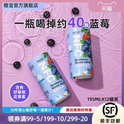 橙宝Frutco NFC果汁100%非浓缩还原橙汁蓝莓汁饮料195ml*12罐装