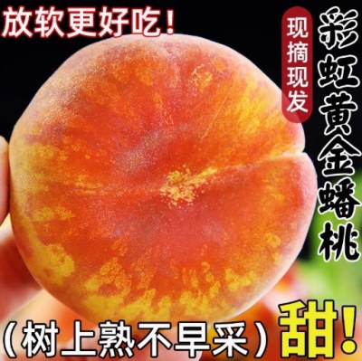 彩虹黄金蟠桃5斤黄肉毛扁桃子新鲜水果蒙阴黄盘奶油甜蜜桃整箱
