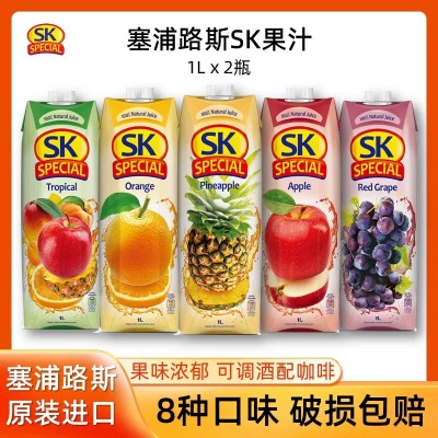 塞浦路斯进口果汁sk菠萝汁橙汁苹果汁葡萄汁梨汁桃汁饮料饮品1L*2