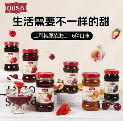 欧萨OUSA 多口味组合果酱380g/罐装真实果肉果粒草莓橙子樱桃覆盆子味 草莓果酱380g/罐
