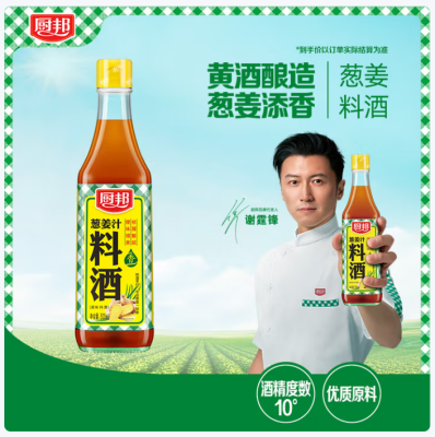 厨邦10°葱姜汁料酒500ml 传统黄酒酿造 精制去腥增香调味料