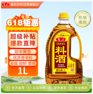 鲁花自然香料酒 1L 黄酒酿造【零添加防腐剂】炖鸡炖肉炒菜 家用调料