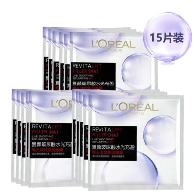 欧莱雅(L'OREAL)复颜玻尿酸水光充盈导入淡纹膨润面膜保湿抗皱紧致舒缓面贴膜女 复颜玻尿酸导入淡纹膨润面膜15片