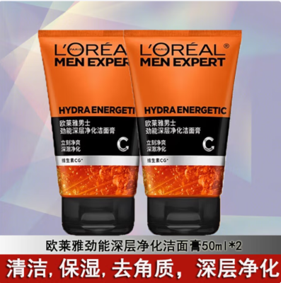欧莱雅男士洗面奶洁面乳膏火山岩劲能矿漠泥清洁清爽控油抗黑头补水保湿 劲能深层净化洁面膏2支共100ml