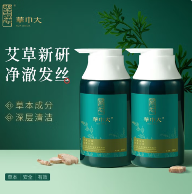 华巾大艾草侧柏叶洗发水去油去屑蓬松油头洗发露洗发膏 艾草洗发水300ml*2